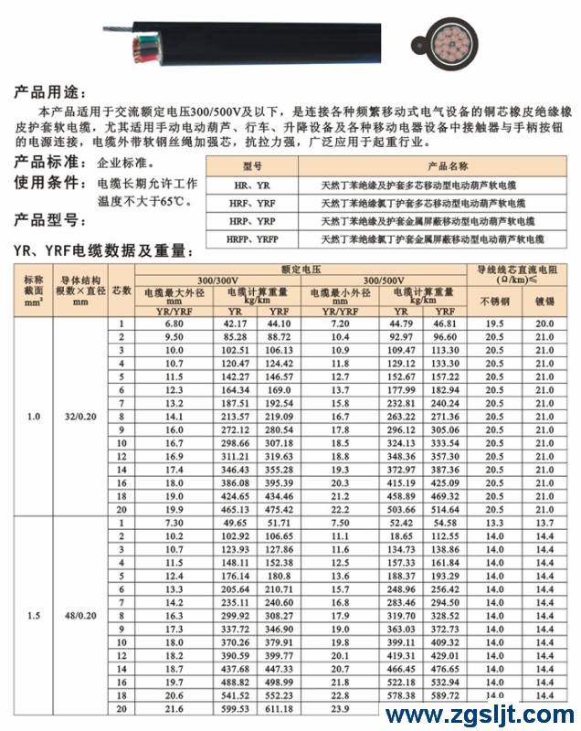 产品名称:电动葫芦软电缆HR YR HRF YRF HRP YRP HRFP YRFP